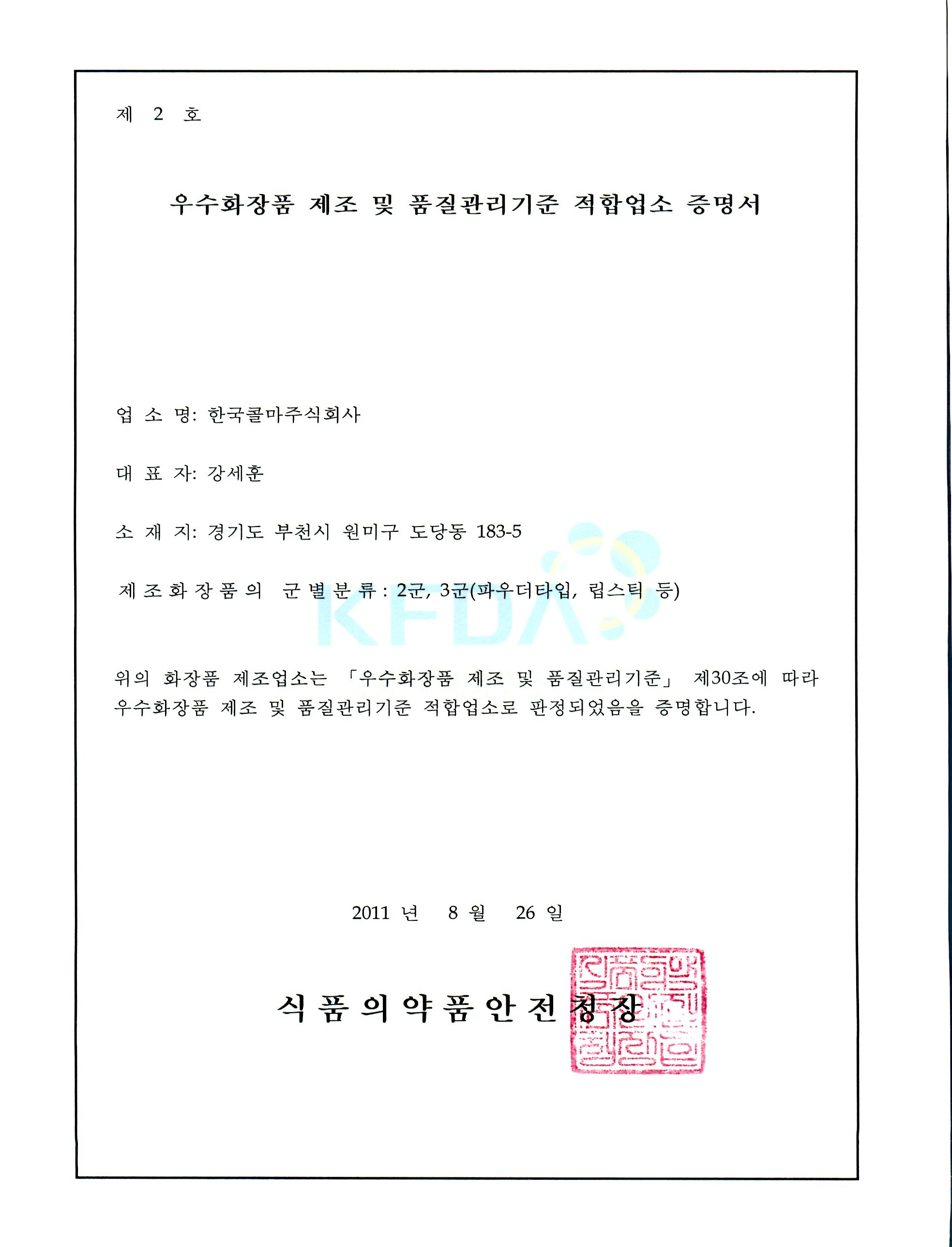 업계 자문교육 요청에 따라 9월 8일 교육 예정 한국콜마가 식약청이 인증한 국내 최초의 제1호 CGMP(Cosmetics Good Manufacturing Practice) 지정에 이어 색조화장품2공장(부천)도 적합기업으로 지정되었다. 한국콜마 색조화장품 2공장이 8월 26일 식약청으로부터 우수화장품 제조 및 품질관리기준에 대한 평가 및 심사를 통해 최종 승인을 받아 본 적합업소로 지정받게 되었다.CGMP는 화장품 품질향상 및 국제경쟁력 제고를 위해 국제표준과의 조화가 필요하다고 판단 지난 3월 24일에 “우수화장품 제조 및 품질관리기준(CGMP)”을 전면 개정 고시함에 따라 본 평가심사를 식약청에서 진행하게 되었다. 이에 지난 첫 첫 인증기업이 바로 한국콜마 기초화장품2공장(신정)이, 8월에는 색조화장품2공장(부천)이 2호기업으로 지정된 것이다. 한국콜마는 본 인증으로 업계의 요청에 따라 9월 8일 신정공장에서 CGMP 관련교육을 실시할 예정에 있다. 참고로 본 인증은 기존 품질관리 기준에 대한 엄격한 평가는 물론 작업장(방충, 방서, 청소, 온습도, 작업 환경테스트 등) 및 개인 위생 및 유지관리가 특히 강화되었다. 또한 국제표준화기구 화장품GMP(ISO 22716) 기준을 「우수화장품 제조 및 품질관리기준」에 적용한 것으로 국내 화장품 품질 기준의 수준을 한 단계 높임으로써 공신력 및 신뢰도를 향상시켰다는 평가를 받고 있다. 새 CGMP는 총칙을 비롯해 총 5장 33조에 걸쳐 인적자원, 제조, 품질관리, 판정 및 감독 등에 대해 규정하고 있다. 지난 3월에 개정된 고시에서는 적합업소 판정을 식약청장이 하도록 규정하고 있다. 식약청장이 GMP 기준에 따라 평가하여 적합 여부를 판정하고 적합한 경우 증명서를 발급하도록 한 것. 또 적합업소 지정을 받은 제조업소와 그곳에서 제조한 화장품에 적합업소 로고를 표시하거나 그 사실을 광고할 수 있도록 했다. 또 화장품의 제조 및 품질관리의 위탁계약에 대한 조항을 신설, 제조 및 품질관리를 위탁하는 경우에 지켜야 할 사항을 규정했다. 특히 제조를 위탁하는 경우에는 CGMP 적합업소에 위탁제조할 것을 권장한다고 명시했다. |