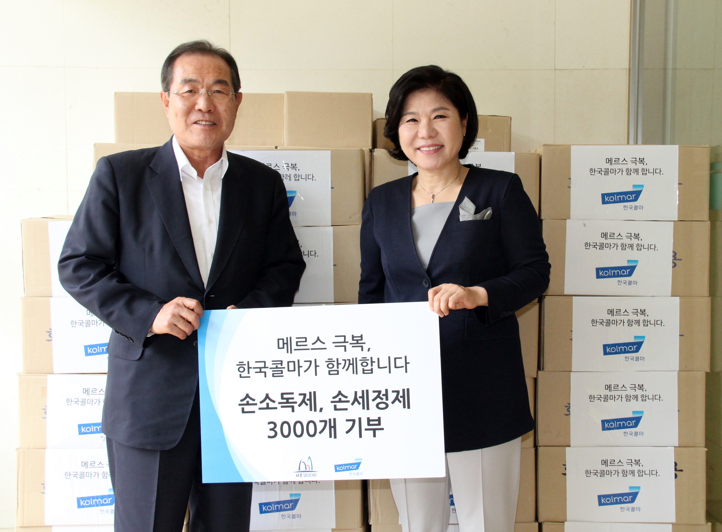 | 메르스 극복 한국콜마가 함께합니다 서울시 및 서초구청에 손소독제 손세정제 기부 윤동한 회장 의료진, 공무원 등 감사인사 전해 중동호흡기증후군(MERS·메르스) 여파로 사회 분위기가 위축된 가운데서도 곳곳에서 시민들의 자발적인 선행 소식이 들려오고 있다. 어려운 형편에도 십시일반 성금을 모아 전달한 서울시의 환경미화원 2400명과 익산의 한 붕어빵 장수부터 시작해 대전 시민들은 메르스 사태의 최전방에서 사투 중인 의료진들을 응원하기 위해 릴레이 피켓과 보드판을 설치해 응원 메시지를 전달하기도 했다. 또 직접 빚어 포장한 정성어린 수제쿠키를 전달하는 시민들의 사례 등 타인과의 접촉이 가장 큰 두려움이 되어버린 시점에 음지에서나마 힘을 보태고자 시민들이 발벗고 나섰다. 화장품·의약품 제조연구 기업인 한국콜마(대표이사 윤동한)도 메르스 확산방지에 앞장섰다. 22일에는 메르스 불안지역인 서초구청을 찾아 한국콜마에서 생산하고 있는 손소독제 3000개를 기부했다. 손소독제는 서초구 소재 어린이집 및 복지관 등에 비치될 예정이다. 서초구청을 찾아 직접 물품을 전달한 윤동한 회장은 “메르스로 인해 사회가 침체돼있는 상황에서 작은 도움이나마 보탤 수 있어 기쁘게 생각한다”며 “이웃과 어려움을 함께 나누는 것은 기업의 책무임을 알기에 메르스가 종식될 때까지 힘을 보태겠다”고 전했다. 아울러 메르스 환자와 그 가족들에게 용기를 잃지 않길 바란다는 격려의 인사를 전하는 한편 메르스 확산 방지를 위해 최전선에서 노고를 아끼지 않는 의료진, 공무원, 자원봉사자에게 “위기 상황에서도 몸을 아끼지 않는 그 분들이야 말로 진정한 영웅이라며 다시 한 번 감사한다”고 전했다. 아울러 한국콜마 임직원은 서울시사회복지협의회를 통해 서울시 국공립어린이집 및 복지시설에서 사용할 물품도 기부하는 등 창립 초기부터 25년간 지역사회와 소외된 이웃을 대상으로 나눔활동을 전개하고 있다. 임직원이 참여한 봉사활동은 2006년부터 공식 집계를 시작한 이후 누적시간이 2만 3000시간을 넘어섰다. 아울러 지난 5월 네팔 대지진 사태 때는 1억원 상당의 의료물품을 지원하는 등 지속적인 나눔활동을 전개하고 있다. ▲한국콜마 윤동한 회장은 메르스 극복에 동참하고자 6월 22일 서초구청을 찾아 손세정제를 기부했다. 왼쪽부터 윤동한 한국콜마 회장, 조은희 서초구청장 |